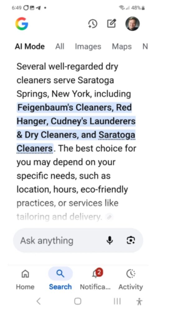 Open Al’s Chat GPT has been making rapid and copious changes, adding more and more capability to their A.I. offerings. But one topic of interest that drycleaners might want to take notice of is the increase of use of Chat GPT for not just information, but people are using Chat GPT as a search engine itself. Usage of Chat GPT as a search engine has increased so much that for the first time ever, Google has reported a DECLINE in overall search volume. Again, you might want to check and see if your business is included in results when people use Chat GPT, Claude, Copilot or Gemini. If you are not found, or don’t know how to check, reach out.
