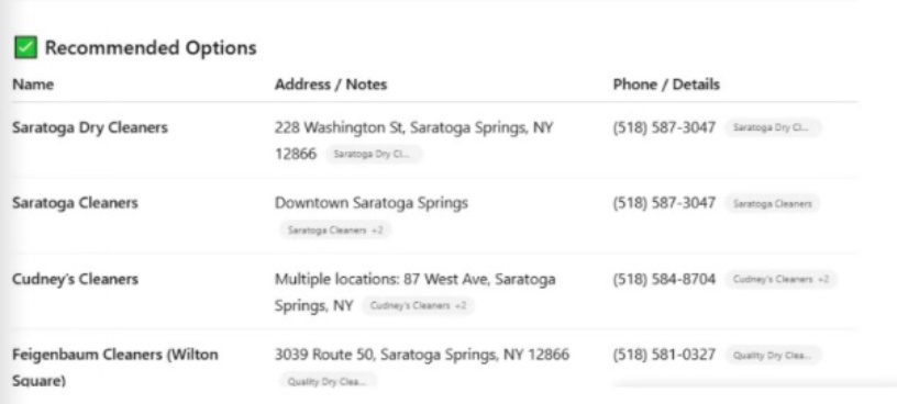 Can you help me find a drycleaner in.Saratoga Springs, NY?