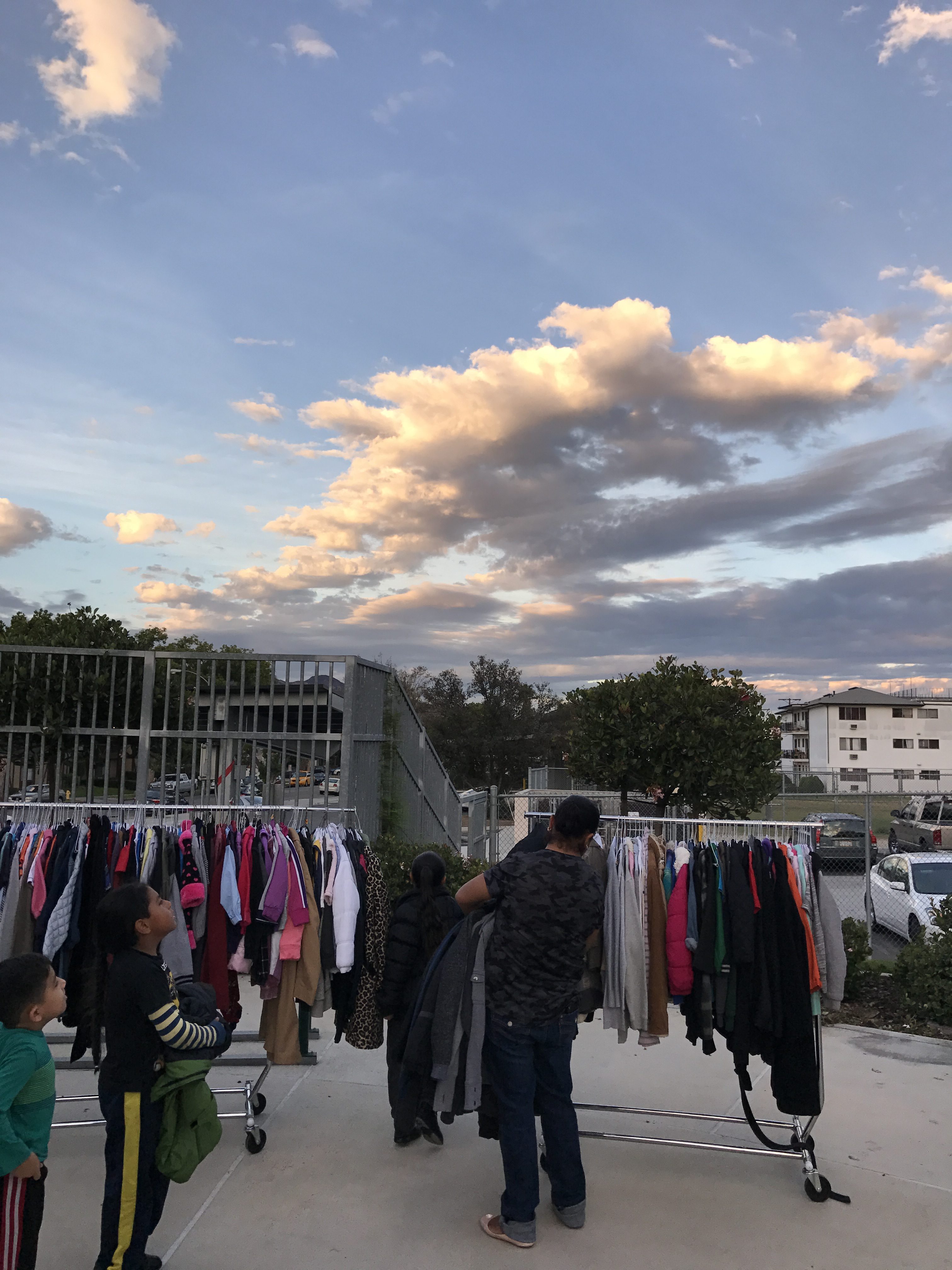 It was cold but sunny on that last Saturday in October. The line started forming about 7:00 a.m. A chance to obtain warm jackets had the children checking out the racks of colorful clothing and trying to decide which one they wanted to take home.