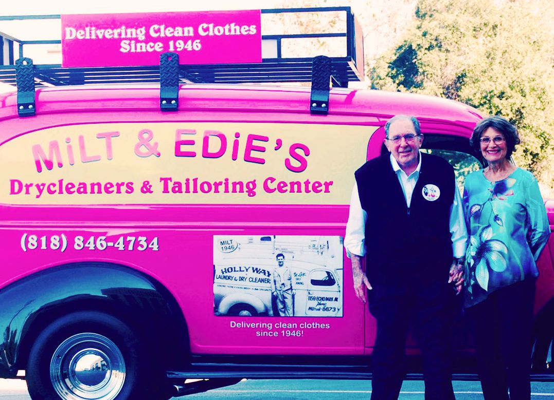But retirement wasn’t really an option for a man with cleaning solutions in his blood. When a business associate asked for Milt’s opinion about buying a cleaning plant in Burbank, he not only suggested buying it, he also became a partner. “We were both successful cleaners and had family members who wanted to be in the business with us, too, and eventually I bought him out,” Milt explains, noting that he named the business Milt & Michael’s Drycleaners for his son-in-law and later renamed it Milt & Edie’s for his wife. “By the way, her name is pronounced ‘EEEEEEdie,’ not ‘Eddie,’” quips Milt, mentioning how she winces every time she hears someone mispronounce her name.