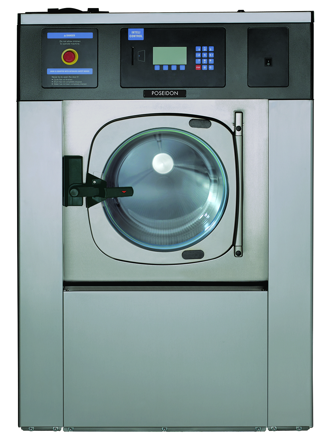 Poseidon Wetcleaning Machines (4.8 to 13.9 cu. ft.) work in concert with high-performance Poseidon Flatwork Ironers (13- and 20-inch diameter rolls; 61-, 84-, 75-, 100- and 125-inch finishing widths), and fully programmable, moisture sensing and reversing Poseidon Dryers (9.2 to 23.3 cu. ft.).